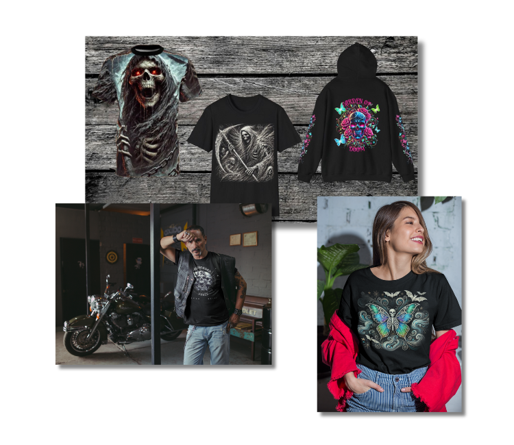 Macabre Threads brings real gothic creatives to life—bold, striking, and unapologetic. No mainstream mall-store fluff, just killer designs made for those who live and breathe the dark aesthetic. Dive into our collection of t-shirts and hoodies, or go bigger with our all-over print shirts and all-over print hoodies, each adorned with captivating alternative and gothic designs that reflect your distinct style.